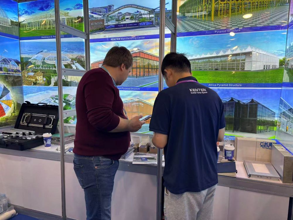 The first day of the Canton Fair opened with tremendous energy and enthusiasm. Visitors from around the world gathered at KENTEN’s Booth 11.2 E17 to explore our latest innovations in modular tent systems, event halls, and industrial storage tents.